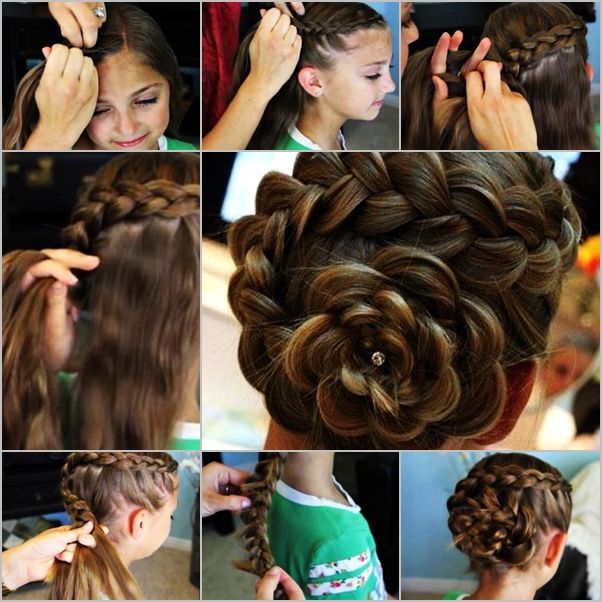 Известно, что прическа в виде розы получается из простых косичек, путем вытягивания петель косы с одной стороны. Сделайте «мальвинку», заплетите косу, затем вытяните с одной ее стороны петли и закрутите косу в красивый пучок-розу.