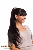 Можно за несколько минут получить модный длинный хвост в классическом стиле или милые романтичные завитки. Существуют также и более сложные прически, которые крепятся на собственный хвост небольшой длины.Стоит отметить, что такую накладку очень просто надевать. Ведь после закрепления не придется постоянно беспокоиться о целостности прически. Все пряди в шиньоне аккуратно уложены и надежно закреплены.