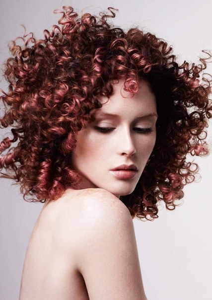 38. Постоянные вьющиеся волосы. Выберите яркий цвет подсветки, чтобы придать локонам сияющий и яркий вид.