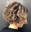 Кудряшки на короткой стрижке украшают овальные и ромбовидные лица. Плохо сочетаются с квадратным и круглым. Они акцентируют внимание на область лба и ушей, не доходя до подбородка и шеи, тем самым визуально утяжеляя верхнюю часть.