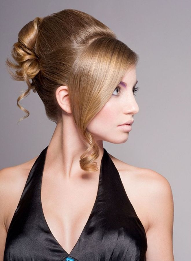 Для молодых леди — на макушке, для дам постарше — на затылке. По-прежнему популярна объемная «гулька», которую легко создать с помощью резинки-бублика в тон волосам. Из прочих модных укладок стоит выделить также: