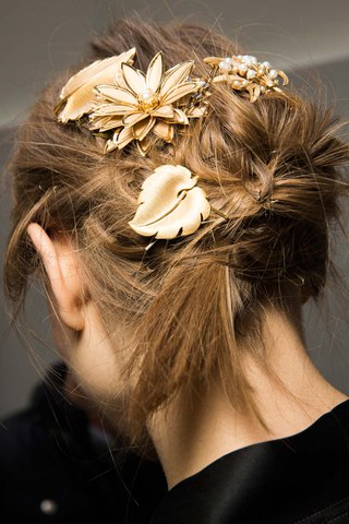 Сочетание различных заколок и шпилек с металлическим золотом делает любую прическу великолепной и стильной.