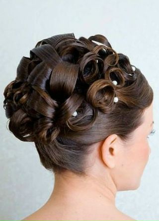 Шаг 5. Укладываем локоны вокруг резинок, формируя петли и завитушки. Фиксируем все невидимками и шпильками.