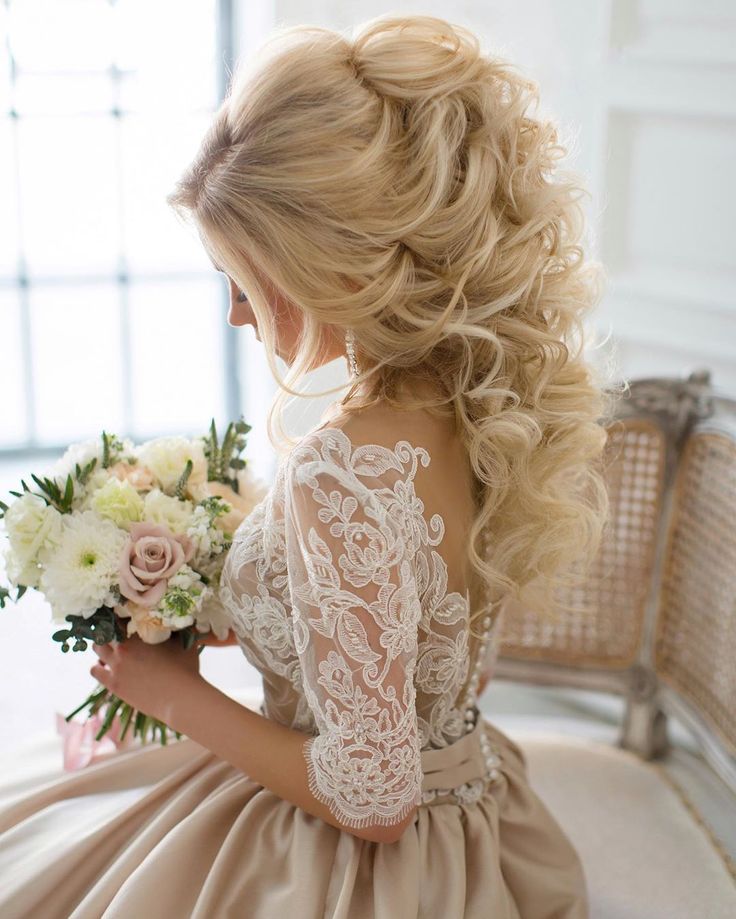 - наряд — от стиля выбранного платья и аксессуаров зависит и выбор прически. Создаваемый образ может стать как романтичным, так и современным; при этом допускается использование абсолютно любых аксессуаров, начиная от полудрагоценных камней и заканчивая живыми цветами;