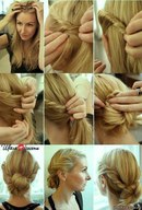 Потяните левую часть к затылку. Накройте им хвостик. Затем закрепите его шпильками. Вуаля, ты можешь закончить эту прическу дома