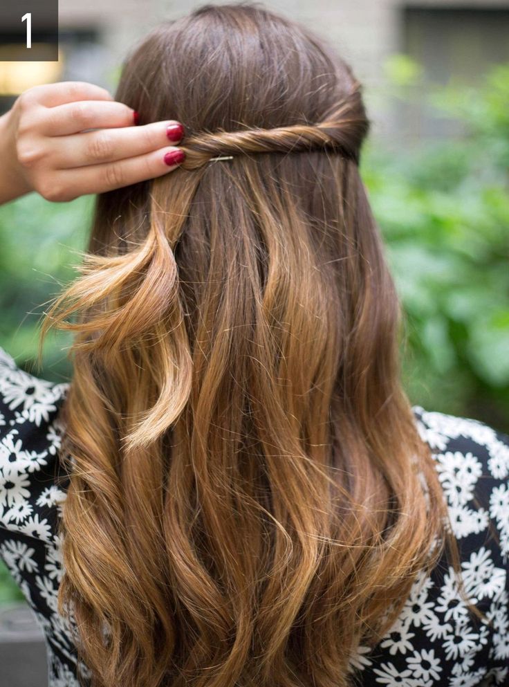 Простая заческа, наполовину поднятая, наполовину опущенная – это всегда легко, но если вы хотите добавить немного гламура, скрутите пряди перед подтягивая их. Это просто и быстро, но все равно очень красиво.