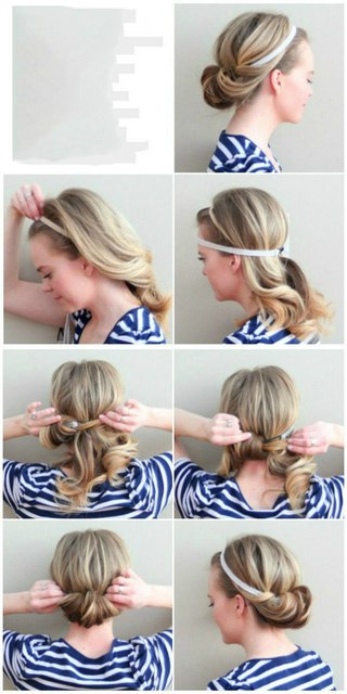 Красивая легкая прическа — французская коса, закрученная на повязку.Выполните по очереди все шаги и красивый образ на каждый день обеспечен.