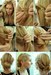 Хвост продевается через это отверстие, так чтобы он как бы провернулся через себя. Пряди хвоста скручиваются в жгут и помещаются между резинкой и головой, как показано на фото. Кончики прячутся и фиксируются шпилькой.