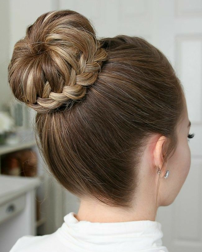 Простая, но в тоже время необычная прическа, хорошо впишется в праздничный и будничный стили. Сделать шишку можно не только на длинных волосах. Аккуратный пучок подчеркивает женственность, с ним осанка выглядят гордой и царственной. Если не использовать декор (заколки, шпильки), то шишка послужит элементом офисного дресс-кода, а пара украшений придадут торжественность и праздничный вид.
