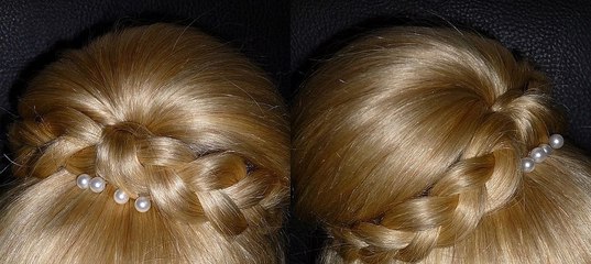 Если предстоит торжественное мероприятие, стилисты советуют делать шишку из французской косы. Ее плетут по косому пробору, не стягивая волосы, и фиксируют резинкой, укладывают улиткой и закалывают шпильками. Прическу можно выполнить из нескольких косичек с лентами, так она будет выглядеть объемнее.