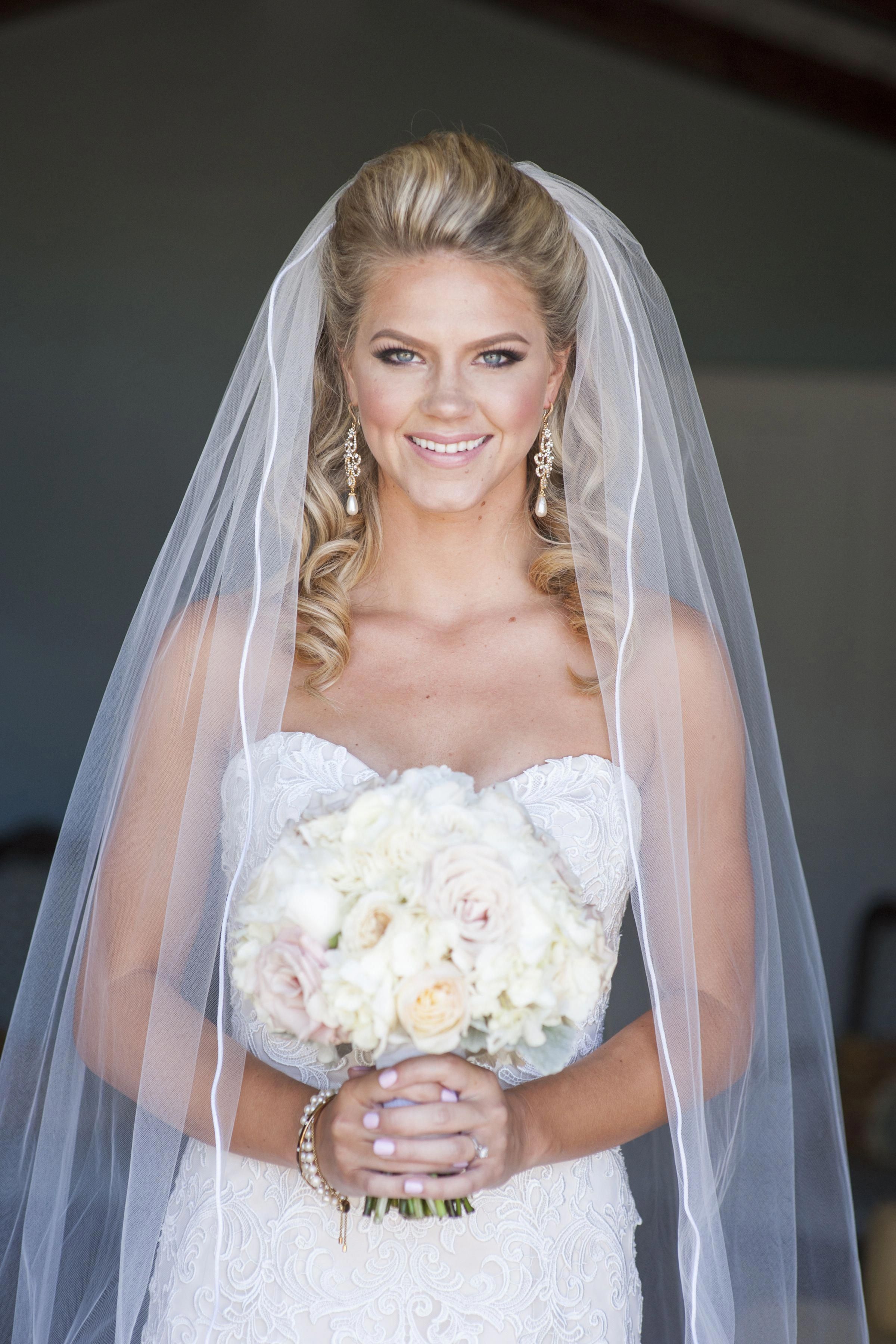 Этот простой стиль отлично смотрится с длинной фатой, особенно если у вас длинные прямые волосы.