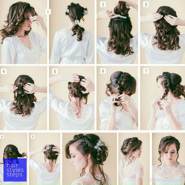 Свадебные прически на средние волосы пошагово: схемы, идеи, фото