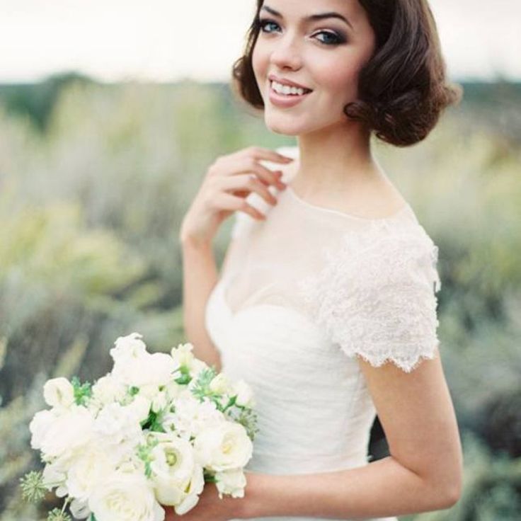 Обратите внимание на некогда популярную причёску ракушка. Эта элегантная свадебная причёска подходит и для коротких волос, подстриженных под каре. Волосы нужно закрутить в ракушку и закрепить шпильками. По желанию её можно украсить стразами или жемчугом. Весьма аристократично.