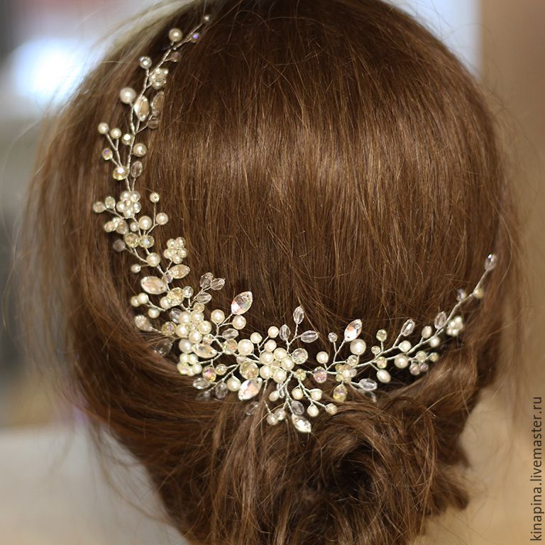 Свадебное украшение в прическу невесты, жемчужный переплет