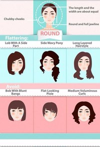 Выбирайте стрижки, создающие объем, они визуально вытягивают лицо. Рекомендуется отказаться от размера на висках, как он придаст большую округлость Вашему лицу. Что тоже относится к коротким стрижкам.Чтобы этого не допустить, обозначьте высоту и длину прически, где волосы коротко подстрижены по бокам, но относительно длинные в верхней части головы.