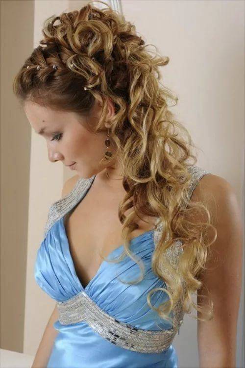 Эта кудрявая светлая прическа для матери невесты особенно эффектно смотрится на густых пышных локонах. Все дело в использовании естественного объема волос для создания женственного романтического ансамбля с движением. Зафиксируйте прическу с помощью лака для волос сильной фиксации.