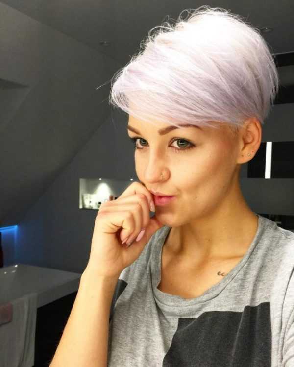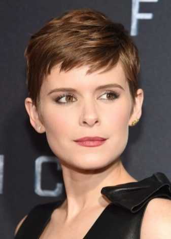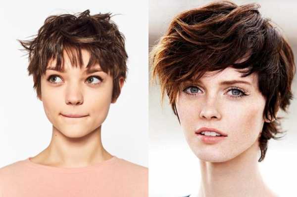 Пикси. Волосы на висках и затылке выстригают максимально коротко, оставляя на макушке объем и торчащие пряди в виде перьев. Она подходит для овальных худых форм лица.