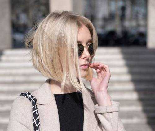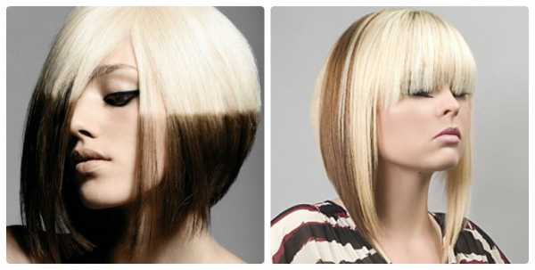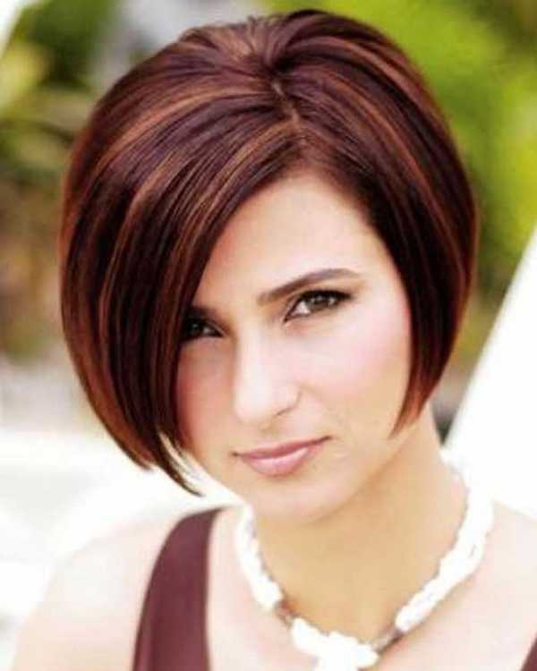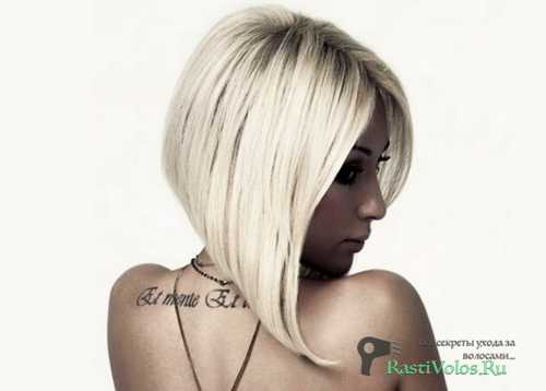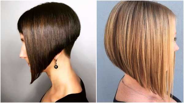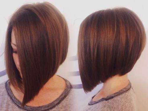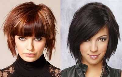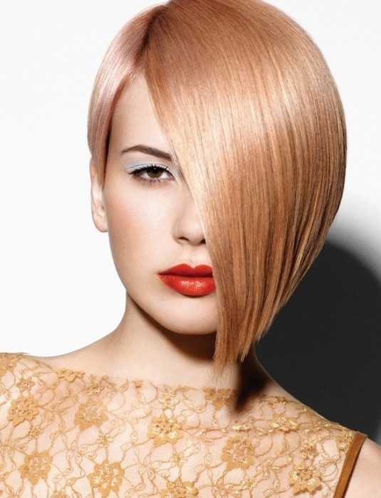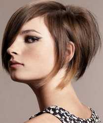На затылке пряди стригутся коротко, а передние могут быть различными. Асимметричную стрижку лучше сочетать с косой челкой. С таким бобом и челкой можно подкорректировать внешность.