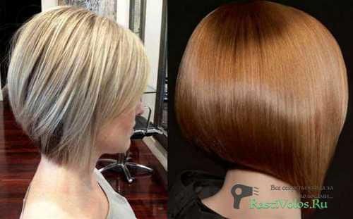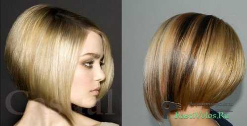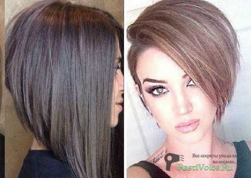 Главной особенностью является сочетание двух оригинальных стрижек – каре и боба. В этой прическе сзади волосы стригутся коротко, а спереди остаются длинными.