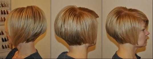 - На затылке боб стрижется коротко, а у каре присутствует прямая линия среза.