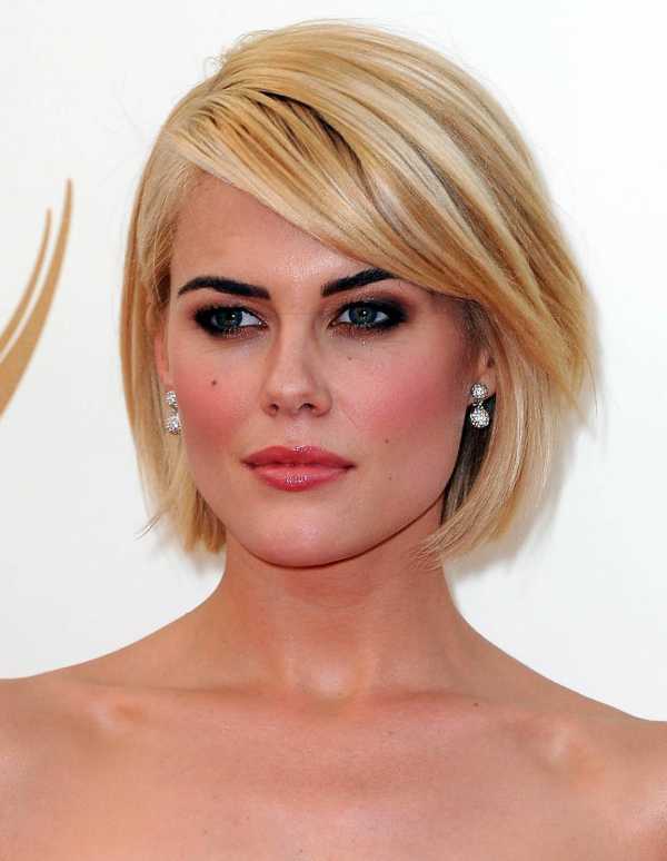 Так же как и на средние локоны, этот удобный вид стрижки идеален для тех, у кого нет времени для ежедневной укладки. Ее выбирают для любого типа внешности. С удлиненными передними прядями внешность станет выразительнее. Такой вариант не очень подходит для удлиненного лица, поскольку оно станет еще уже.
