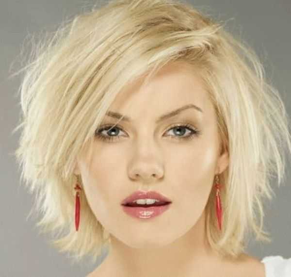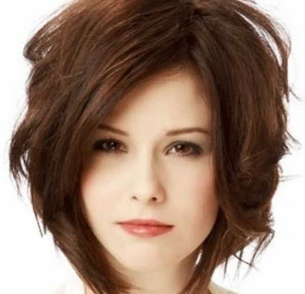 - Обладательницам круглого лица подходят рваные пряди и объемная макушка. Челка должна быть косая и профилированная.