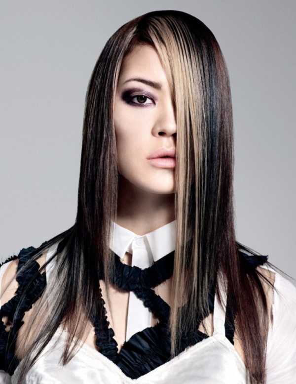 Редко какая девушка готова к эксперименту над длинными прядями. Однако именно на таких волосах эффект симметрии виден лучше всего. Здесь можно создать максимально возможный контраст между отдельными прядями, что, несомненно, будет эпатировать всех окружающих.