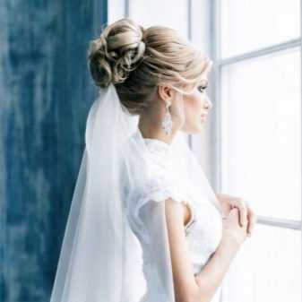 Высота пучка и его объем полностью зависят от длины волос. Короткие волосы и волосы средней длины не позволят сделать высокий, объемный пучок, а длинные пряди в пучке довольно сложно закрепить. Но не бывает ничего невозможного, так как волосы всегда можно нарастить, а вариантов укладочных средств, которые закрепят волосы невесты все равно что цемент, огромное количество.