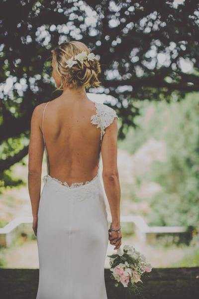 - Если у платья открытая спина, то лучшим выбором на свадьбу станет высокий пучок. Ваш силуэт будет очень изящным и элегантным, а образ – законченным.