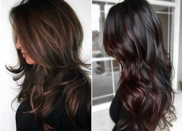 Airtouch окрашивание на темные волосы сделает их объемными и сияющими. Если локоны черные или холодные каштановые, подойдут бордовый, фиолетовый, синий тона. При желании добавить контраст можно использовать пепельную гамму. Хорошо смотрятся на брюнетках оттенки карамели, кофе, шоколада.