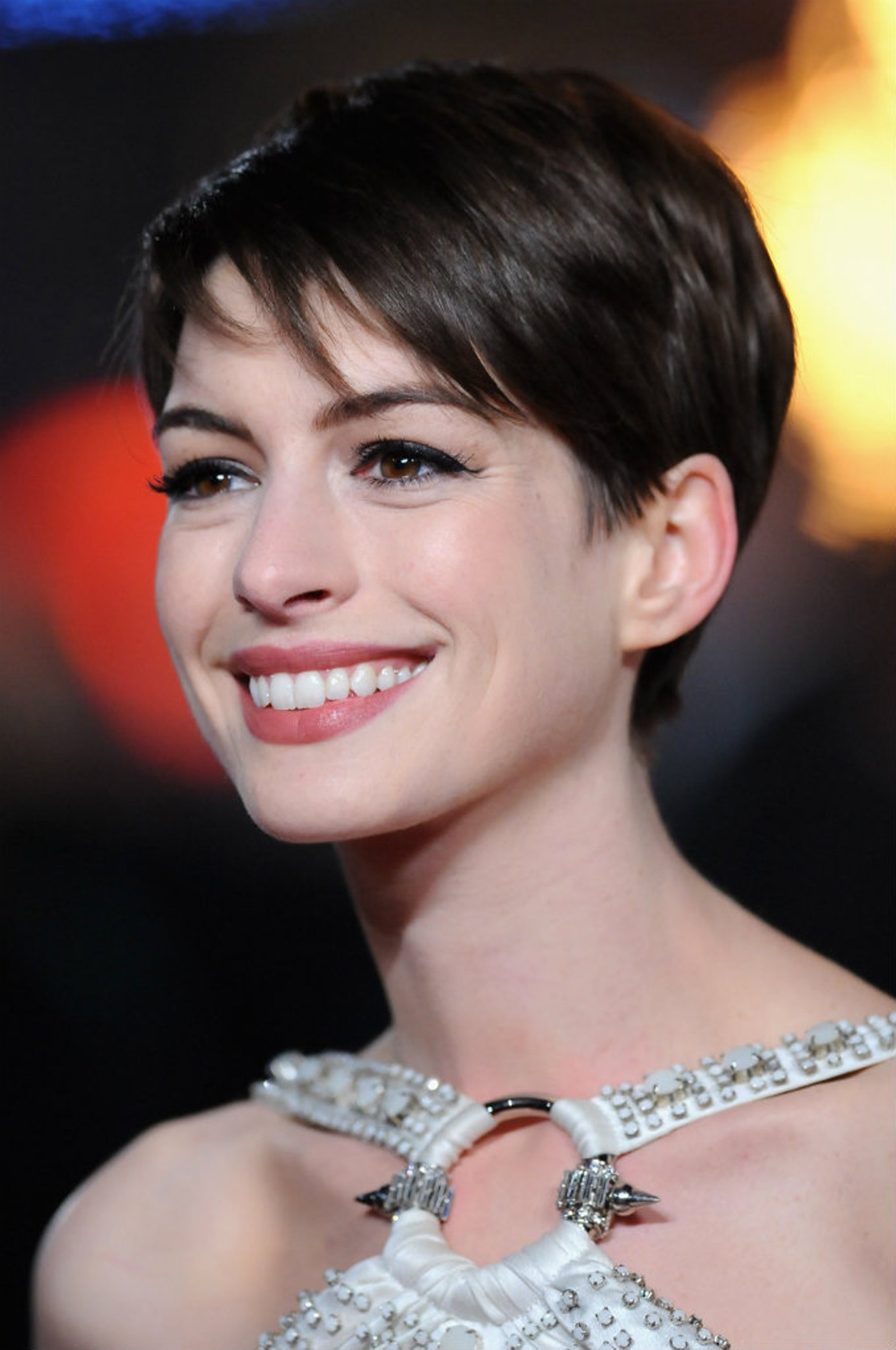 Энн Хэтэуэй распрощалась с густыми волосами фильма «Отверженные». Впрочем выглядит она также очаровательно. Правда в одном из интервью призналась, что со слезами смотрит на себя в зеркале.