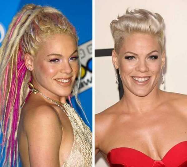 - Пинк. Еще одна ярая поклонница коротких причесок, которую даже тяжело представить с длинными волосами. Пинк уже не один год носит пикси с удлиненной челкой, которую она выделила, покрасив в розовый цвет.