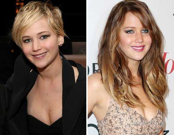 - Дженнифер Лоуренс. Актрисе пришлось коротко состричь свои волосы вовсе не из-за желания режиссера, как это говорилось ранее, а потому, что она просто неудачно осветлилась. Тем не менее, обновленный, хоть и не совсем желанный, образ настолько подошел девушке, что Дженнифер решила больше не отращивать волосы, так как с короткими прядями она выглядит намного эффектнее.