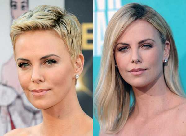 - Шарлиз Терон. Еще одна актриса, которая ради любимой работы вынуждена была побриться налысо. В итоге, после съемок фильма, увидеть Шарлиз без головного убора было практически невозможно, так как женщина попросту стеснялась торчащих во все стороны отрастающих волос. Но как только получилось сформировать стрижку пикси, Шарлиз перекрасилась в пепельный блонд и смело начала демонстрировать новый образ, чем вызвала немалый восторг.