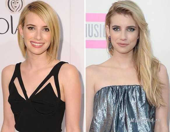 Модные стрижки знаменитостей: актриса с «кукольным» круглым личиком Эмма Стоун, чтобы сгладить округлость щечек, выбрала стрижку боб с косой челкой. Очень мило!