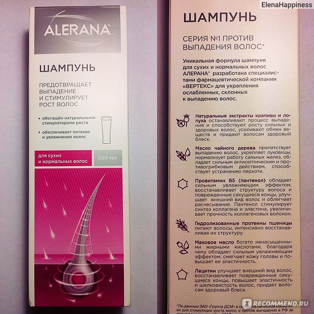 В состав Alerana шампунь от выпадения волос для нормального и сухого типа входит масло чайного дерева, которое помогает укрепить фолликулы.