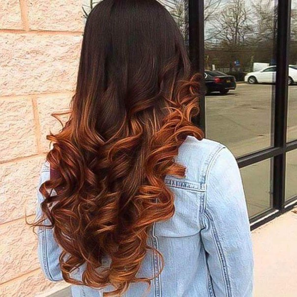 Медные оттенки хорошо смотрятся именно в технике омбре, при этом они идеально сочетаются с шоколадными и каштановыми цветами, в том числе и натуральными русыми и пепельными волосами.