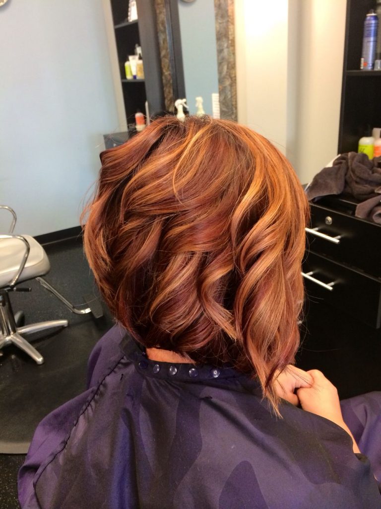 Такое рыжее мелирование позволит выглядеть укладке объемнее, выгодно подчеркнет форму лица и цвет глаз;