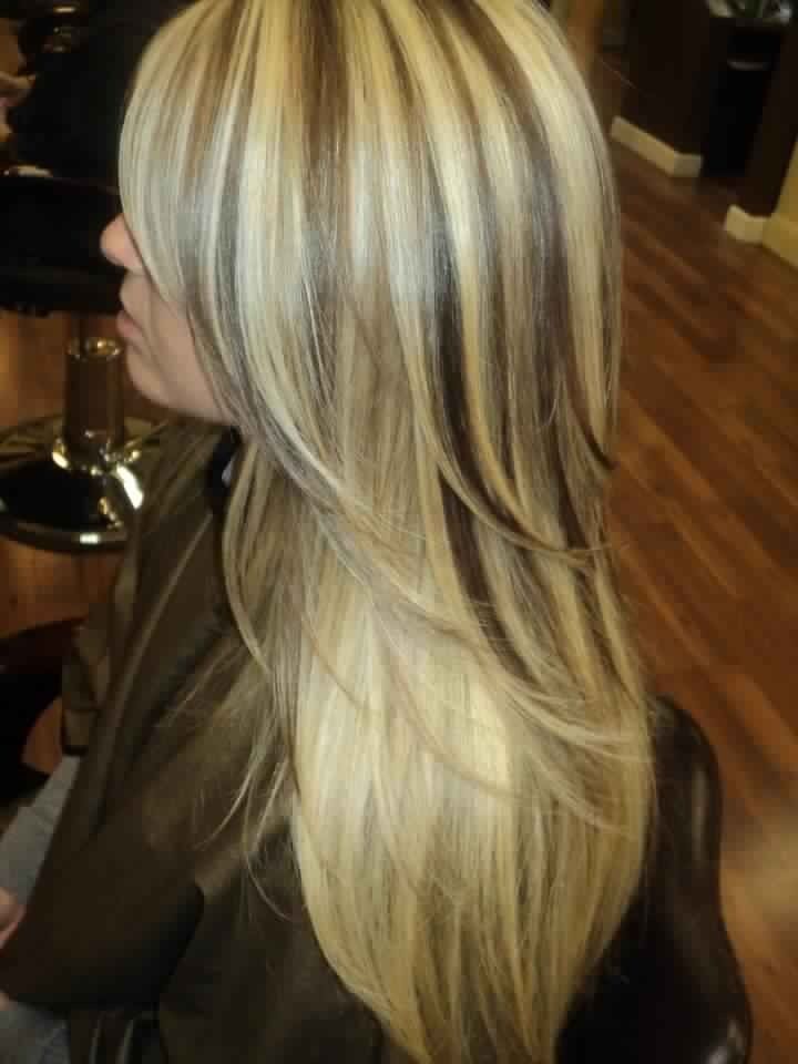 Новый тренд в окрашивании светлых волос подчеркивает индивидуальность девушки, ее оригинальность и неповторимость. Темные пряди благодаря контрастности цветов визуально придают прическе объем. Есть возможность поэкспериментировать сразу с несколькими близкими оттенками.