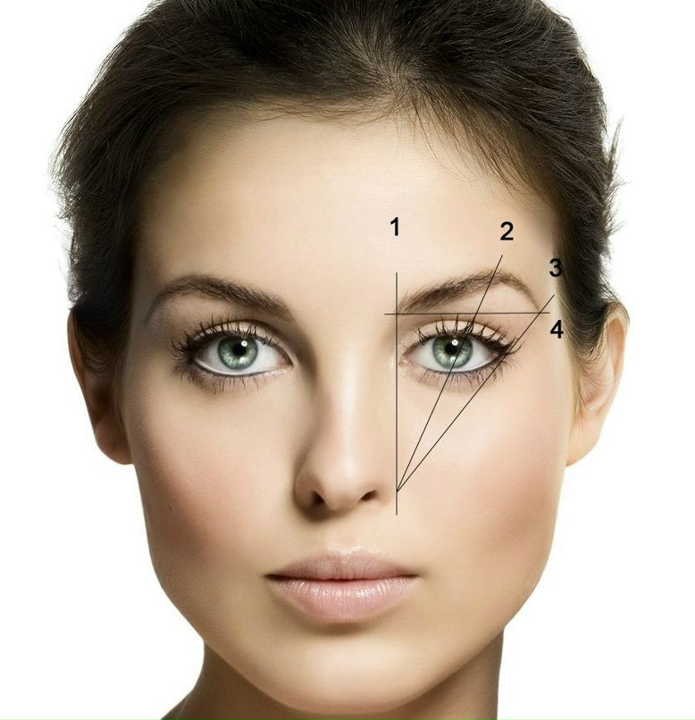 Схема гармоничных бровей позволяет создать нужный изгиб и длину, которая будет актуальна и подходит к чертам внешности.