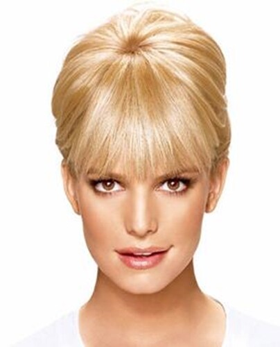 Воздушная челка. Та же технология, что и для пышной челки, но наоборот: первый слой должен быть где-то на 2,5 миллиметра длиннее, чем два остальных.