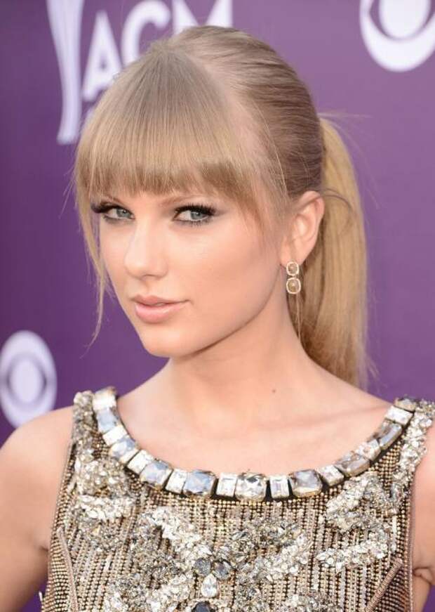 Челка Тейлор Свифт, в соответствии с модными тенденциями, тоже стала длиннее. Скрыть широкий лоб с такой стрижкой сложнее. Спасает положение укладка наискосок, волной.