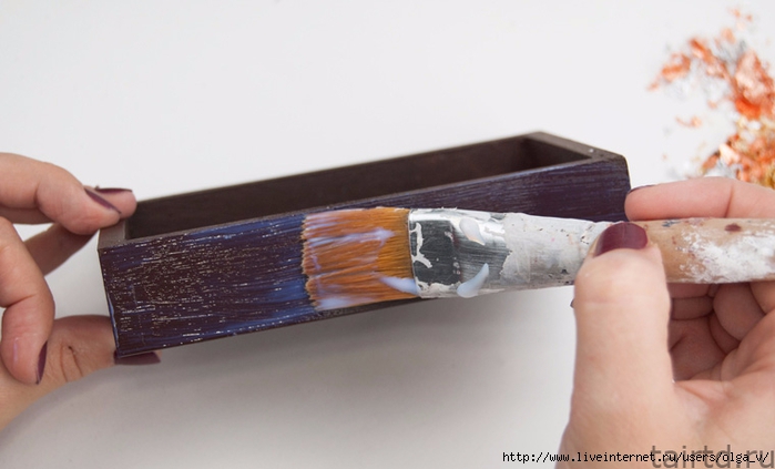 При работе с поталью крошкой, можно приклеивать ее на твердый клей, например, в виде карандаша. А вот для пористой поверхности подойдет пастообразный клей, который придаст матовый блеск поверхности и послужит своеобразной грунтовкой для изделия.