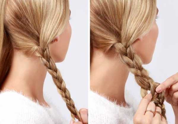 Так попеременно добавляются небольшая часть волос с одной и другой стороны и перекладываются в руки с противоположной стороны. В конце коса закрепляется заколкой или резинкой. Можно также просто заплести ее до самого конца и не использовать ничего.