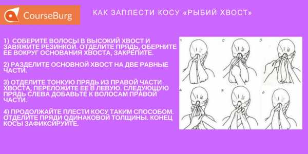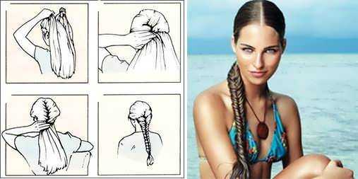 Еще один простая схема для плетения косы – рыбий хвост. Наиболее эффектно этот вариант смотрится на длинных волосах и волосах средней длины.