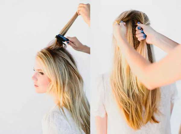 - Подготовка волос – необходимо придать волосам как можно больше объёма. Для этого сделайте начес в прикорневой зоне или сделайте гофре с помощью специального прибора.