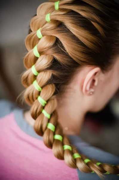 - ленты, цветные шнурки, мулине — вплетать их следует равномерно, распределяя украшения по всей длине косы