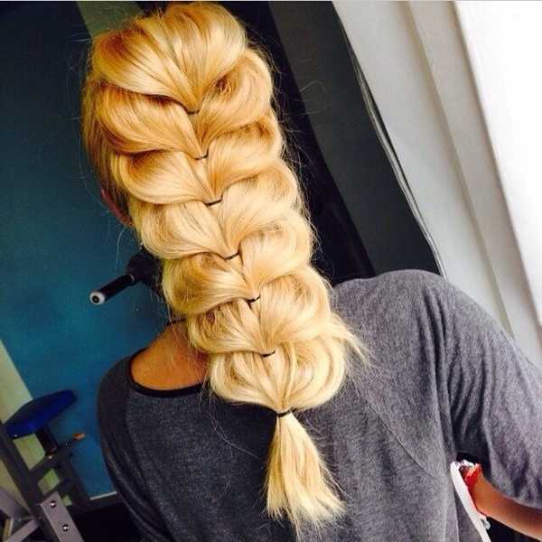 Но тонкие и редкие волосы с такой косой будут выглядеть великолепно и объемно. Чем объемнее хочется получить волосы, тем они больше растягиваются стороны. Иногда предварительно сделанное мелирование с прядями окрашенными в разные цвета, создает объемность.
