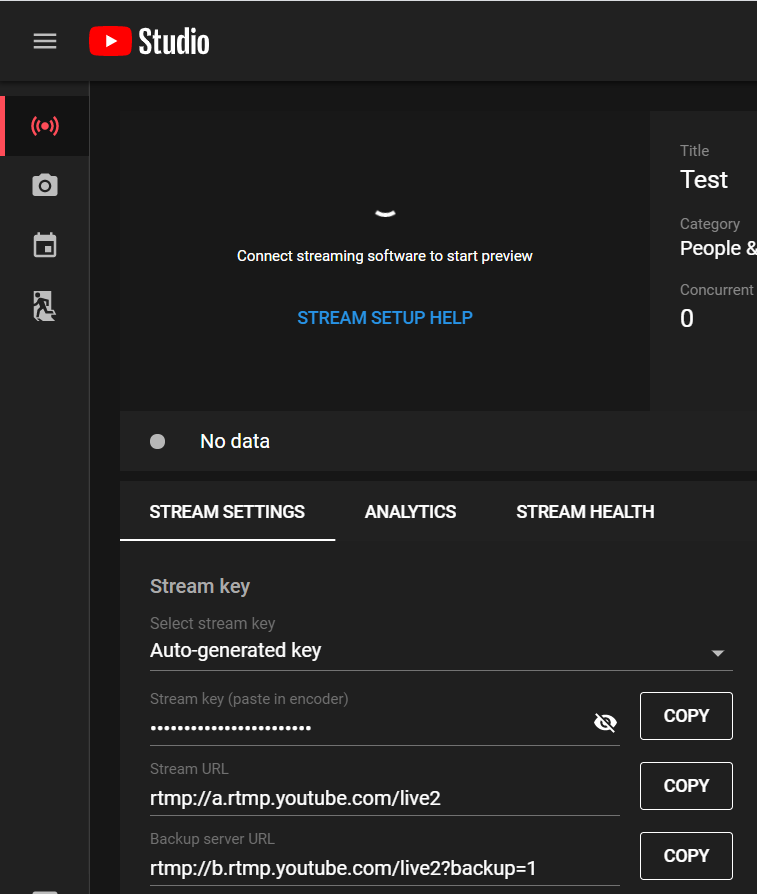 5. Перейдите в Настройки потока и скопируйте свой ключ потока. Вы можете использовать тот же ключ потока для будущих потоков. Вы также можете настроить и сохранить несколько ключей потока.