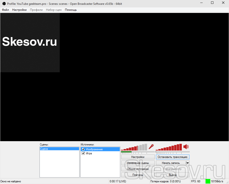 - Источники – отображаются источники. К примеру, захват окна или игры.